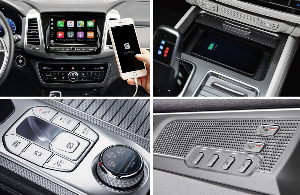 Rexton standarta aprīkojumā ietilpst skārienekrāns ar navigācijas sistēmu un dubulto Bluetooth funkciju. Papildu aprīkojumā ir pieejams 360 grādu apkārtskata monitors, kas atvieglo novietošanu stāvvietā un sniedz vadītājam pārliecību pat visšaurākajās vietās.