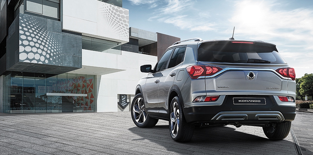 За счет горизонтальных линий дизайна внедорожник производит впечатление более широкого и низкого, чем прежний. Сбоку кузов Korando напоминает стрелу, что усиливает производимый машиной внешний эффект. В современную комплектацию входят светодиодные задние фары и поворотники на боковых зеркалах. В дополнительную комплектацию входят также светодиодные ходовые огни и светодиодные передние противотуманные фары.