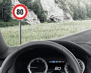 Распознавание дорожных знаковСистема следит за появляющимися впереди дорожными знаками. Действующие ограничения скорости и запрет обгона отображаются для водителя на блоке индикаторов. |